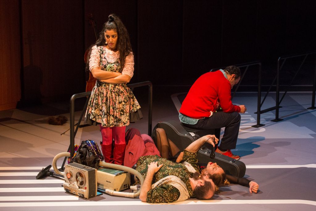 Τα πρόσωπα, τελείως καθημερινά, μιλούν, κι όπου δεν τους φτάνουν τα λόγια τραγουδούν, και βέβαια, όπως το θέλει η ιδιαιτερότητα του έργου, όλοι μα όλοι παίζουν εξαιρετικά κιθάρες, βιολιά, ακορντεόν, τσέλο, μαντολίνα και πιάνο και πάλι τραγουδούν και πάλι μιλούν και ούτω καθεξής έως το χαρούμενα λυπητερό τέλος.