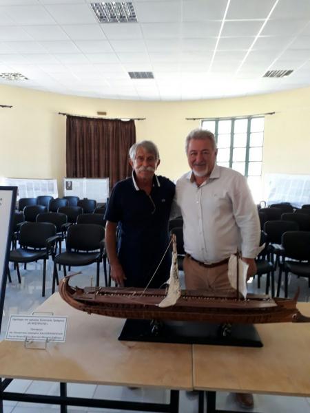 Ο Δήμαρχος Ηγουμενίστας κ. Ιωάννης ΛΩΛΟΣ και ο Πρόεδρος του ΘΟΥΚΥΔΙΔΕΙΟΥ ΣΥΛΛΟΓΟΥ ΣΥΒΟΤΩΝ κ. Γρηγόριος ΚΑΛΟΓΕΡΟΠΟΥΛΟΣ, προ του ομοιώματος της Τριήρους Η ΘΕΣΠΡΩΤΙΣ .