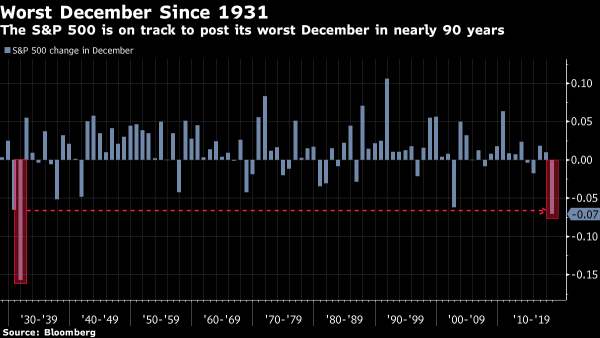 Αξίζει να σημειωθεί ότι Dow Jones και S&P 500 οδεύουν για τον χειρότερο Δεκέμβριο από το 1931, την περίοδο της Μεγάλης Ύφεσης, με τον πρώτο να καταγράφει συνολικές απώλειες 7,8% και τον δεύτερο 7,6% από την αρχή του μήνα.