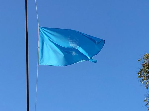 Πρόκειται για μια γαλάζια σημαία, με μια πατημασιά από λευκές κηλίδες στο κέντρο της