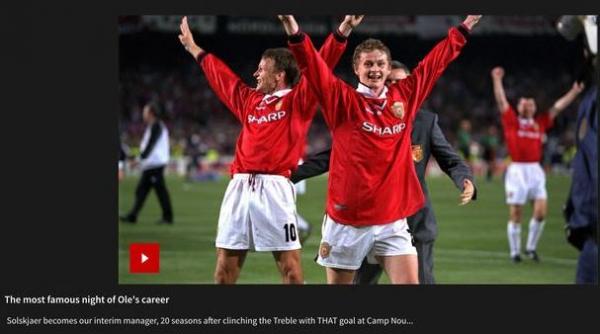 Συγκεκριμένα, δημοσιεύτηκε ένα βίντεο από τη νύχτα της Βαρκελώνης (τελικός Τσάμπιονς Λιγκ), το 1999, με την ανακοίνωση να αναφέρει χαρακτηριστικά: «Την πιο σπουδαία βραδιά στην καριέρα του Όλε. Ο Σόσκιερ γίνεται υπηρεσιακός προπονητής της ομάδας μας, 20 σεζόν μετά από εκείνο το γκολ στο Καμπ Νόου…».