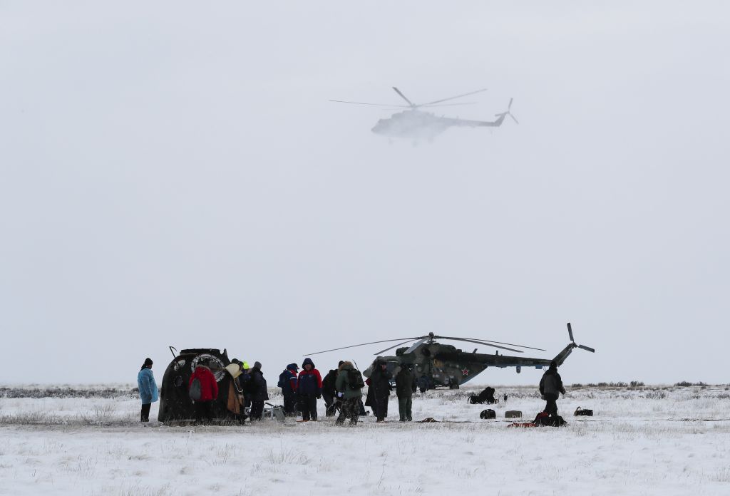 Με απόλυτη ασφάλεια προσγειώθηκαν στο Καζακστάν οι δύο αστροναύτες και ο κοσμοναύτης που επέστρεψαν με ρωσικό πύραυλο Σογιούζ από τον Διεθνή Διαστημικό Σταθμό (ISS) στη Γη