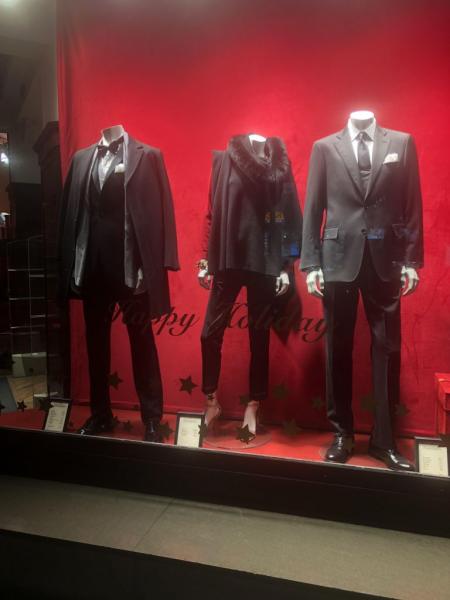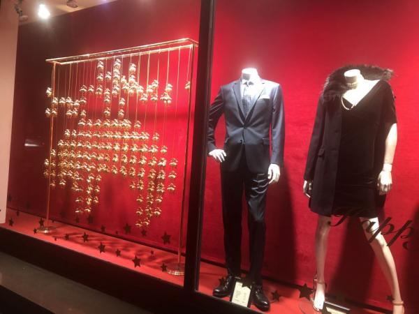 Γιορτινές, σε κόκκινα, χρυσά και μαύρα χρώματα. Με πολύ κομψά ρούχα για γυναίκες και άνδρες. Βιτρίνες γεμάτες φως της γιορτής, για ένα από τα εμβληματικότερα καταστήματα της πόλης…