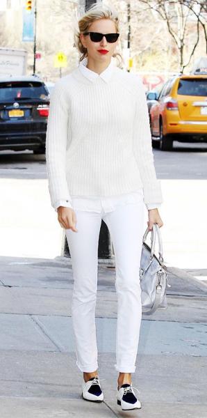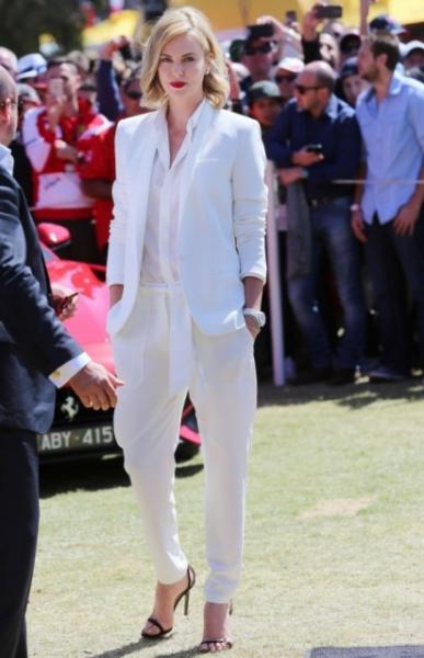 Το αγαπημένο χρώμα της Σαρλίζ Θερόν και όχι τυχαία. Το λευκό χρώμα δένει φοβερά με το ξανθό και δίνει την αίσθηση της ομοιομορφίας. Μια ξανθιά γυναίκα μοιάζει αριστοκρατική μέσα σε μια λευκή εμφάνιση. Άλλωστε η μονοχρωμία πάντα δίνει ένα κολακευτικό εφέ. Ένα ολόλευκο κοστούμι φαντάζει άψογο ακόμα και τον χειμώνα.
