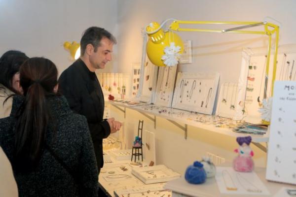 Ο κ. Μητσοτάκης έδειξε ιδιαίτερο ενδιαφέρον και για μία επιχείρηση που παράγει χειροποίητα αντικείμενα από τις σελίδες αδιάθετων τευχών του περιοδικού «Σχεδία» με τη μέθοδο της δημιουργικής ανακύκλωσης (upcycling).