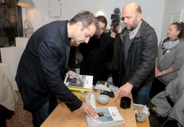 Ο Κυριάκος Μητσοτάκης έγραψε στην κάρτα του «Υγεία, ευτυχία και χαρά για το 2019!». Στις συζητήσεις που είχε ο πρόεδρος της ΝΔ με τους απασχολούμενους στις κοινωνικές επιχειρήσεις δεν έλειψαν και οι αναφορές σε πολιτικές προτιμήσεις με πολλούς από τους εργαζόμενους αλλά και τους καταναλωτές να δηλώνουν πως θα τον ψηφίσουν.