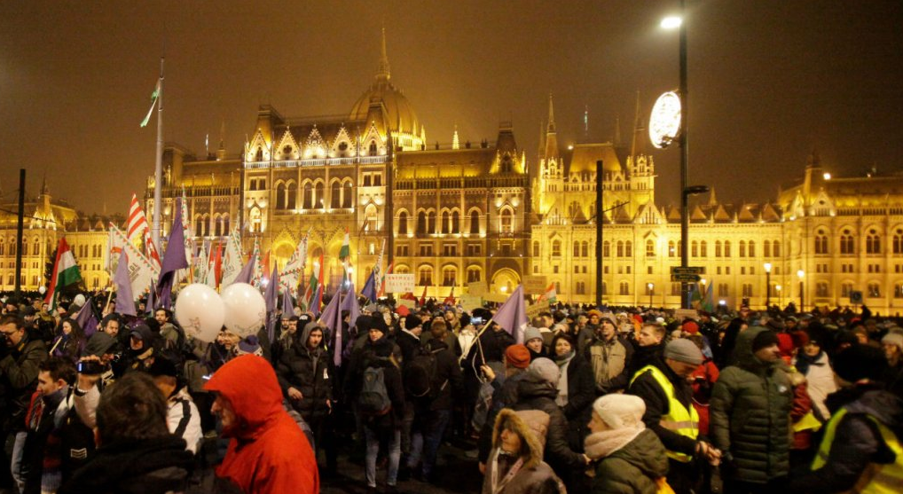Χιλιάδες Ούγγροι πραγματοποίησαν αργά χθες το βράδυ πορεία διαμαρτυρίας προς το προεδρικό μέγαρο στη Βουδαπέστη, διαμαρτυρόμενοι για την επικύρωση την Πέμπτη από τον πρόεδρο της χώρας, Γιάνος Άντερ, εργατικού νόμου, ο οποίος χαρακτηρίζεται «νόμος δουλείας» από τους επικριτές του.