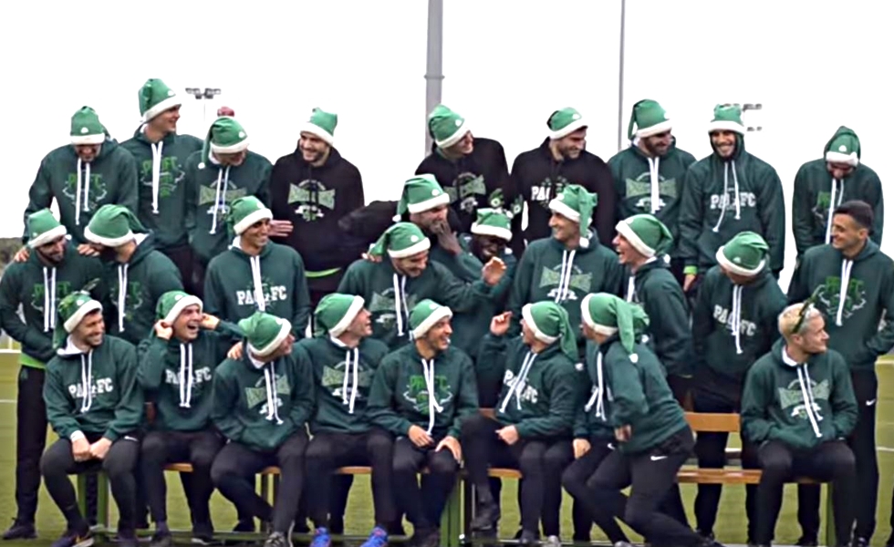 Άπαντες όσοι απαρτίζουν τον ποδοσφαιρικό Παναθηναϊκό βρέθηκαν στο Κορωπί, ντύθηκαν με πράσινους σκούφους σαν… εναλλακτικοί Άγιοι Βασίληδες και στη συνέχεια στόλισαν το χριστουγεννιάτικο δέντρο των αθλητικών εγκαταστάσεων στέλνοντας τις ευχές τους για καλές γιορτές στους φίλους της ομάδας, μιλώντας στην κάμερα του PAO TV.