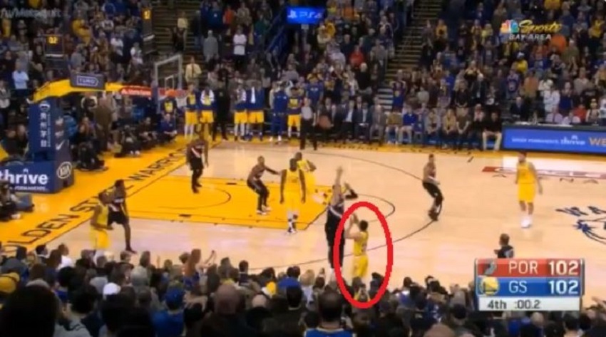 Ο Στεφ Κάρι έβαλε ένα απίστευτο καλάθι που δεν μέτρησε ποτέ, καθώς ευστόχησε από την επαναφορά μπάλας στο ματς με τους Μπλέιζερς.