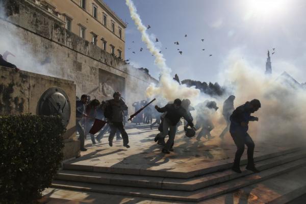 Συγκρούσεις μεταξύ διαδηλωτών και αστυνομίας μετά την πορεία μνήμης για τα δέκα χρόνια από την δολοφονία του Αλέξανδρου Γρηγορόπουλου από αστυνομικό, Αθήνα, 6 Δεκεμβρίου 2018.