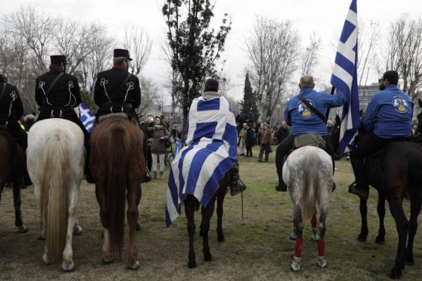 Χιλιάδες κόσμου διαδηλώνουν στην πλατεία Συντάγματος, διαμαρτυρόμενοι για την χρήση του όρου Μακεδονία ως συνθετικό της τελικής διεθνούς ονομασίας της ΠΓΔΜ, Αθήνα, 4 Φεβρουαρίου 2018.