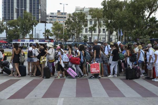 Τουρίστες ταξιδεύουν προς τα Ελληνικά νησιά, από το λιμάνι του Πειραιά, στις 20 Ιουλίου, 2018.
