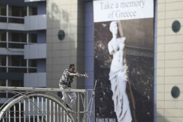 Άνδρας απειλεί να αυτοκτονήσει στη πλατεία Ομονοίας, στην Αθήνα, στις 5 Οκτωβρίου, 2018