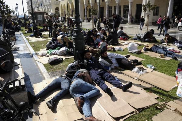 Μετανάστες περιμένουν να καταγραφούν έξω από αστυνομικό τμήμα στην πλατεία Αριστοτέλους, Θεσσαλονίκη, 8 Οκτωβρίου 2018.