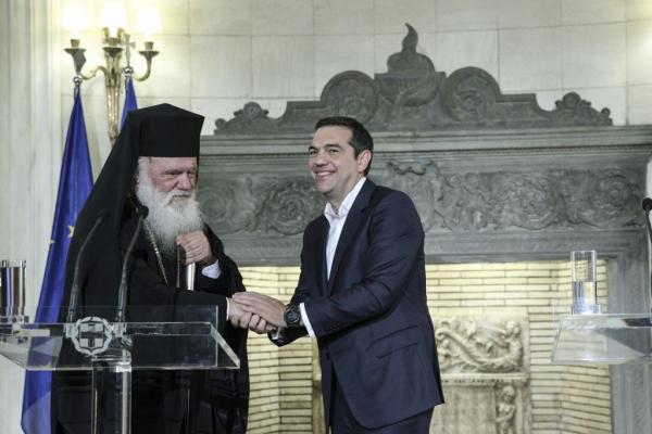Συνάντηση του Αλέξη Τσίπρα με τον Αρχιεπίσκοπο Ιερώνυμο, στο Μέγαρο Μαξίμου, στις 6 Νοεμβρίου, 2018