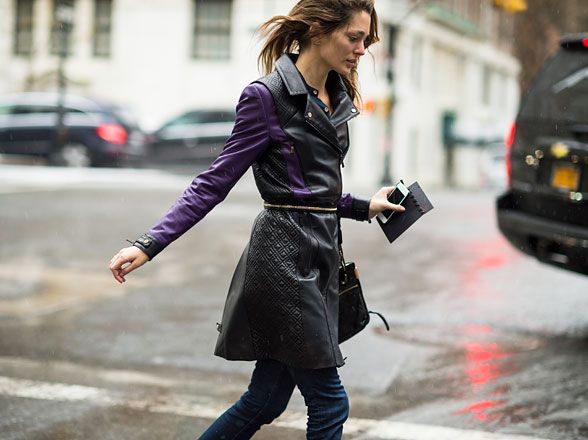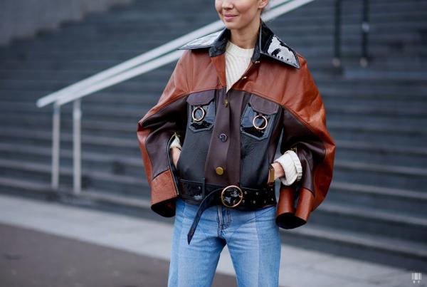 Δερμάτινη καπαρντίνα με χρωματιστά μανίκια, με ζώνη στην μέση ακόμα καλύτερο.