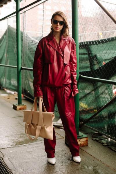 Δερμάτινο λουκ σε ένα χρώμα από την κορυφή μέχρι τα νύχια.