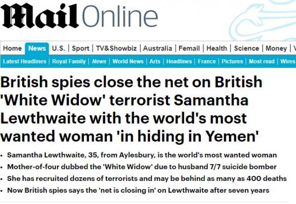 Σύμφωνα με το δημοσίευμά, το οποίο επικαλείται τις βρετανικές υπηρεσίες πληροφοριών ασφαλείας, σημειώνει ότι η «Λευκή Χήρα» κρύβεται στην Υεμένη, πιθανώς υπό την προστασία μελών της ισλαμιστικής οργάνωσης Αλ Σαμπάαμπ.