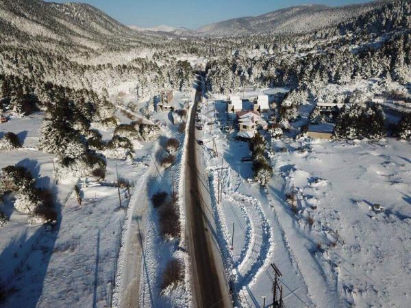 Η κυκλοφορία στο μεγαλύτερο κομμάτι της περιοχής διεξάγεται μόνο με αλυσίδες, ενώ οι εικόνες και το βίντεο από το Arahocameteo.gr είναι εντυπωσιακά