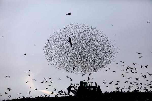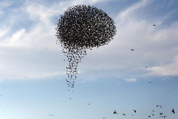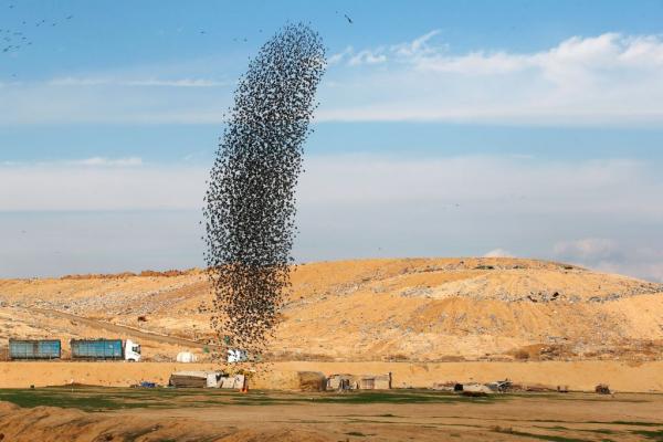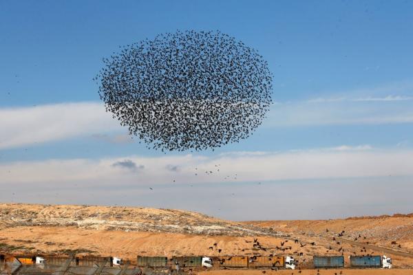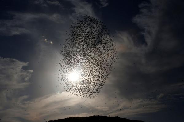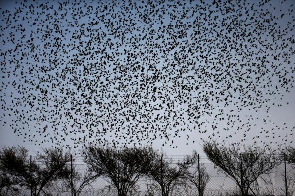 Ψαρόνια που ξεχειμωνιάζουν στο Ισραήλ κάνουν έναν εντυπωσιακό εναέριο χορό κάθε πρωί τις δύο τελευταίες εβδομάδες πάνω από την έρημο Νεγκέβ.