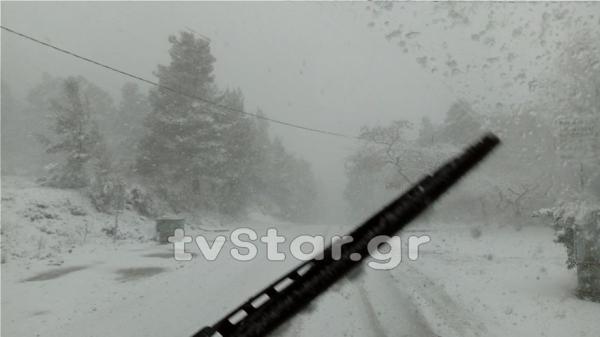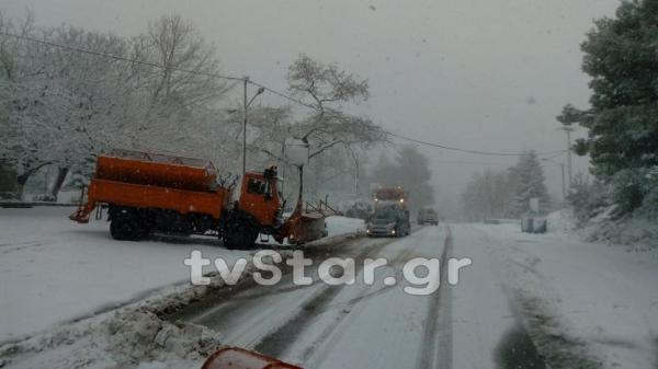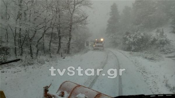 Η χιονόπτωση είναι πυκνή στην βορειοκεντρική Εύβοια ενώ απαγορεύεται η μετακίνηση των φορτηγών στο κεντρικό οδικό δίκτυο.