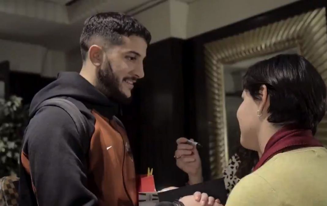 Ο Έλληνας αμυντικός χάρισε χρόνο στην κοπέλα με τα προβλήματα όρασης, κάνοντάς τη ευτυχισμένη που κατάλαβε ότι τον είχε δίπλα της και του έπιανε το χέρι.
