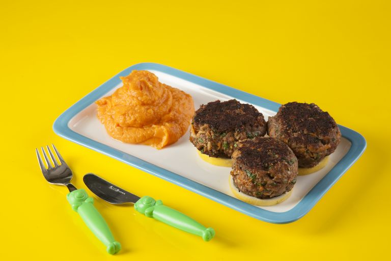 Μπιφτέκια με καρότο και βρώμη και πουρές γλυκοπατάτας