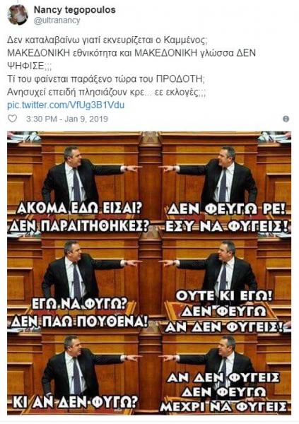Τώρα το κατάλαβα Ο Πάνος Καμμένος Άλλαξε λογότυπο στους ΑΝΕΛ Παχυνε τόσο πολύ που σχεδόν έγινε διπλάσιος Και όλα αυτά Για να ξεγελάσει ψηφοφόρους Ότι δεν είναι ο ίδιος με αυτόν που ξεπούλησε την Μακεδονία είχε εμπιστοσύνη σε Κοτζιά ψήφισε Μνημόνια και μέτρα εναντίον Ελλήνων ΚΟΛΠΟ