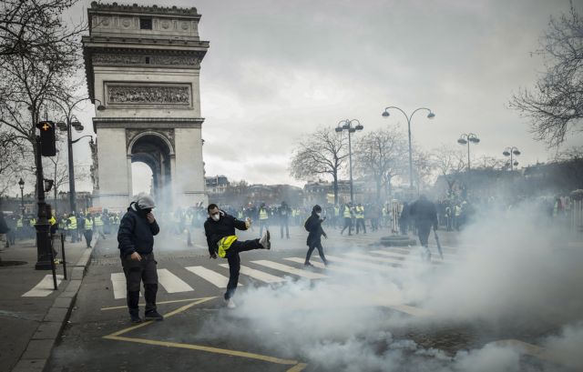 Στην Αψίδα του Θριάμβου τα «κίτρινα γιλέκα» – Δακρυγόνα και πλαστικές σφαίρες από την Αστυνομία