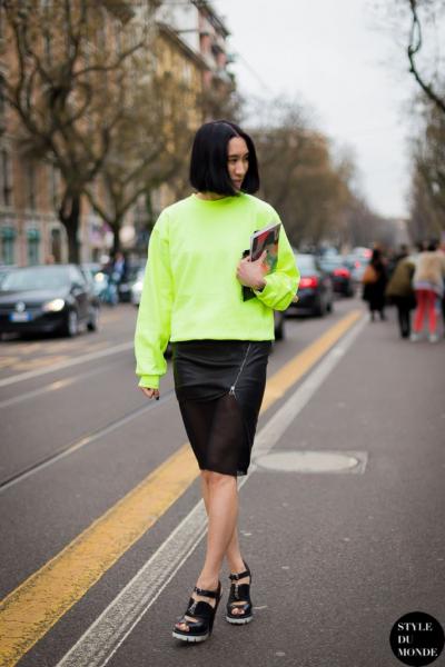 Σκεφτείτε την Κένταλ Τζένερ, η οποία συνδύασε το νέον τοπ της με την αντίστοιχη σκιά ματιών ή την Μπέλα Χαντίντ, η οποία αντιστάθμισε ένα φθορίζον γιλέκο με άσπρο πουκάμισο. Δοκιμάστε μια παρόμοια εμφάνιση αναμειγνύοντας το φανταχτερό νέον χρώμα με τα ουδέτερα, ή πάρτε μαθήματα από την Άσλει Γράχαμ και κάντε το απόλυτο color blocking με κάτι εξίσου έντονο.