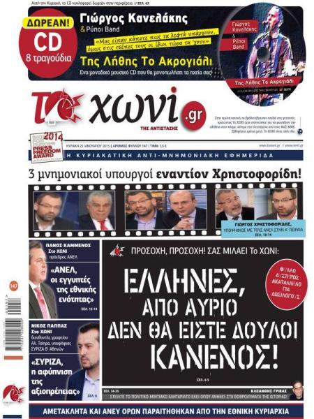 Της εφημερίδας που ο εκδότης της κατέβηκε βουλευτής με τους ΑΝΕΛ, μετά προσλήφθηκε στην κυβέρνηση, μετά έγινε διευθυντής του γραφείου τύπου του υπουργού Ψηφιακής Πολιτικής, Νίκου Παππά, θέση από την οποία παραιτήθηκε πέρσι τον Μάιο για να καλύψει το τυπικό 18μηνο που απαιτεί ο νόμος για να κατέβει στις εκλογές. Με τον ΣΥΡΙΖΑ, αυτή τη φορά.