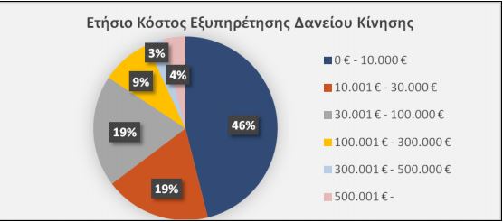 Επίσης διαπιστώνεται ότι περίπου το 50% των επιχειρήσεων έχει ετήσιο κόστος εξυπηρέτησης του δανείου μικρότερο από 10.000 ευρώ