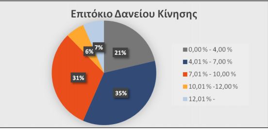 Όμως, παρατηρούνται υψηλά επιτόκια στα δάνεια κίνησης, που όπως όπως επισημαίνουν οι αναλυτές αποτελούν ανασταλτικό παράγοντα για τη σύναψη νέων δανείων. Μόνο δύο στις δέκα επιχειρήσεις έχουν υπογράψει δάνειο με επιτόκια κάτω του 4%. Η πλειοψηφία (66%) έχουν επιτόκιο μεταξύ 4% έως 10%, ενώ ένα αξιοσημείωτο ποσοστό (13%) έχει διψήφιο ποσοστό επιτοκίου.