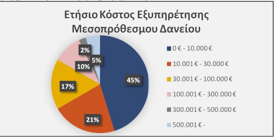 Από την εμπειρική ανάλυση προκύπτει ότι περίπου επτά στα δέκα μεσοπρόσθεσμα δάνεια έχουν ετήσιο κόστος εξυπηρέτησης μικρότερο των 30.000 ευρώ.