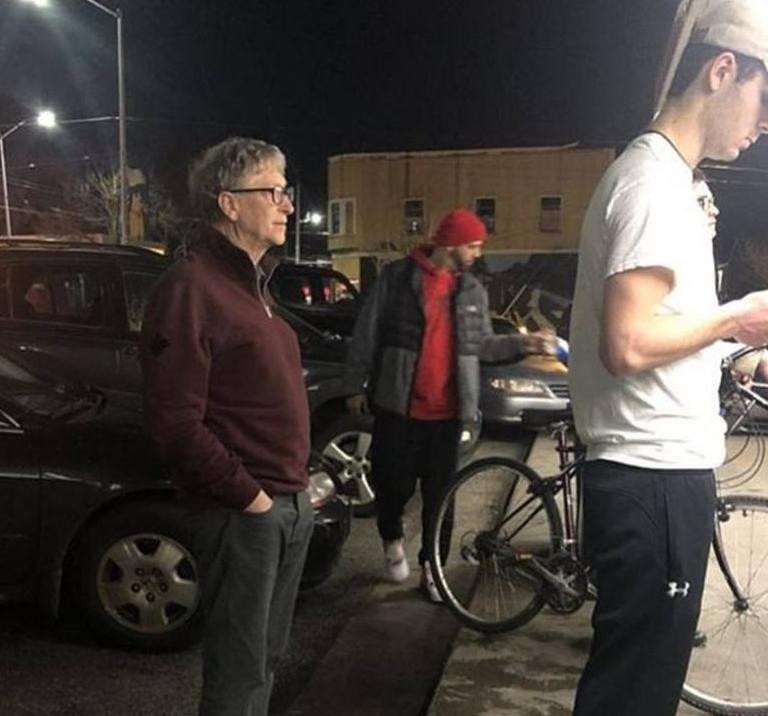 Ο Μπιλ Γκέιτς περιμένει υπομονετικά στην ουρά για ένα μπέργκερ