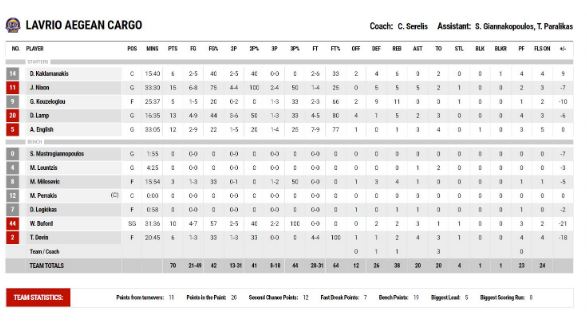 Το Λαύριο πάλεψε ως τα μέσα του τελευταίου δεκαλέπτου, όμως τελικά λύγισε γνωρίζοντας τη 10η ήττα του και 7η εκτός έδρας. Με 20 λάθη, η ομάδα του Χρήστου Σερέλη ήταν δύσκολο να φύγει με νίκη από μια τέτοια έδρα.