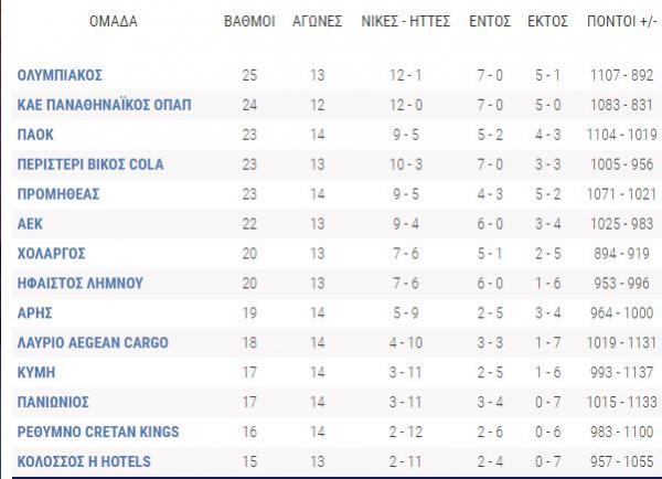Τέσσερα από τα συνολικά επτά ματς της 14ης αγωνιστικής της Basket League πραγματοποιήθηκαν το Σάββατο (19/1). Να σημειώσουμε ότι το ματς της ΑΕΚ με το Περιστέρι στο Νίκος Γκάλης αναβλήθηκε λόγω προβλήματα στον ηλεκτροφωτισμό του γηπέδου.