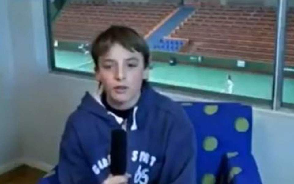 Στο βίντεο ακούγεται ο 13χρονος τότε αθλητής να απαντάει χωρίς δισταγμό «Ρότζερ Φέντερερ» στην ερώτηση σχετικά με τον ποιον αθλητή θαυμάζει