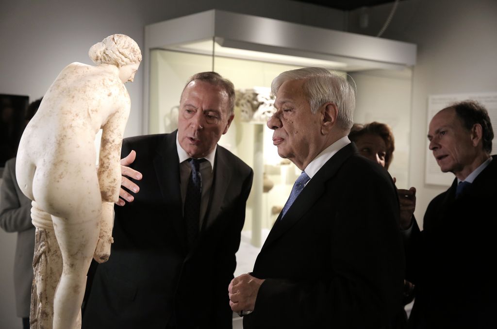 Το Μουσείο Κυκλαδικής Τέχνης στο κέντρο της Αθήνας επισκέφθηκε σήμερα ο Πρόεδρος της Δημοκρατίας, Προκόπης Παυλόπουλος, ο οποίος ξεναγήθηκε από τον καθηγητή Νικόλαο Σταμπολίδη στην έκθεση «Κρήτη. Αναδυόμενες πόλεις: Άπτερα - Ελεύθερνα - Κνωσός. Τρεις αρχαίες πόλεις ζωντανεύουν»