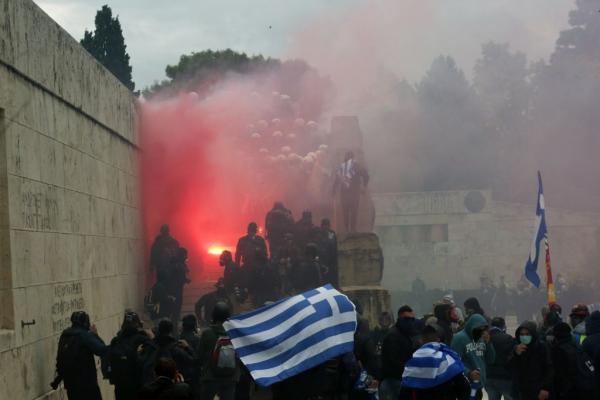 Επεισόδια σημειώθηκαν έξω από τη Βουλή κατά τη διάρκεια του συλλαλητηρίου της Κυριακής κατά της Συμφωνίας των Πρεσπών.