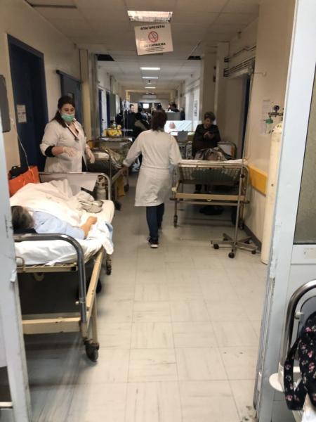 Υπογραμμίζεται ότι «στην Β παθολογική του Νοσοκομείου εισήχθηκαν 73 ασθενείς οι 35 εξ αυτών Νοσηλεύονται σε ράντζα. Γέμισαν οι διάδρομοι της κλινικής και τα ράντζα φτάνουν έως τις σκάλες. Στην Α’ καρδιολογική κλινική εισήχθηκαν 36 ασθενείς οι 20 εξ’ αυτών σοβαρά καρδιολογικά περιστατικά βρίσκονται σε ράντζα στους διαδρόμους. Πέταξαν έξω τα προσωπικά αντικείμενα των Τραυματιοφορέων και μετέτρεψαν τα αποδυτήριά τους σε θάλαμο ασθενών με τέσσερεις ασθενείς.
