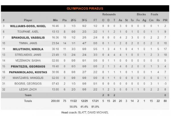 Επί της ουσίας ο Ολυμπιακός παρουσιάστηκε χωρίς τα «όπλα» του στo Ulker Sports and Event Hall απέναντι σε μία ομάδα που είναι αήττητη φέτος στην έδρα της. Στη χειρότερη παραγωγική βραδιά του σε ένα ημίχρονο φέτος (28 πόντοι στο α΄ μέρος), με 16,4 λιγότερα ριμπάουντ από τον μέσο όρο του και χωρίς διάθεση στην άμυνα, είδε τους παίκτες του Ομπράντοβιτς να ξεφεύγουν ακόμη και με +20!