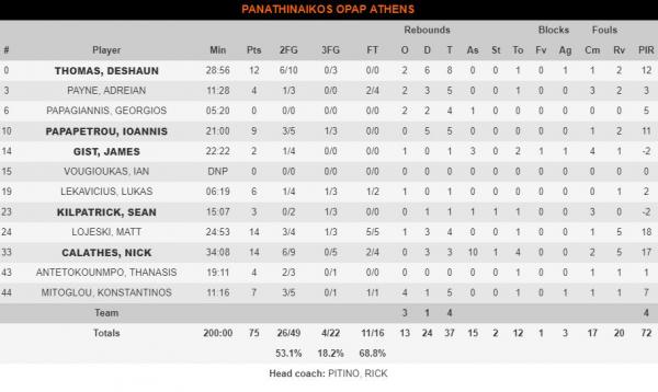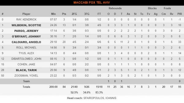 Από τη Μακάμπι (που προσπέρασε το Τριφύλλι φτάνοντας στο 9-11) οι Καλοϊάρο (20π., 4/5διο, 11ρ.), Ουίλμπεκιν (13π.), Μπλακ (9π.) ήταν οι καλύτεροι ενώ για τον Παναθηναϊκό προσπάθησαν οι Λοτζέσκι (14π.), Καλάθης (14π., 10ας), Τόμας (12π.).