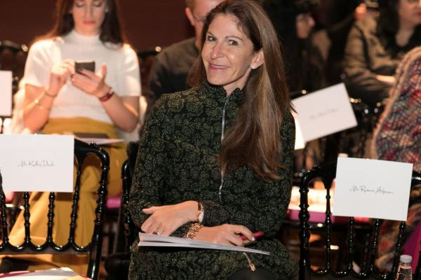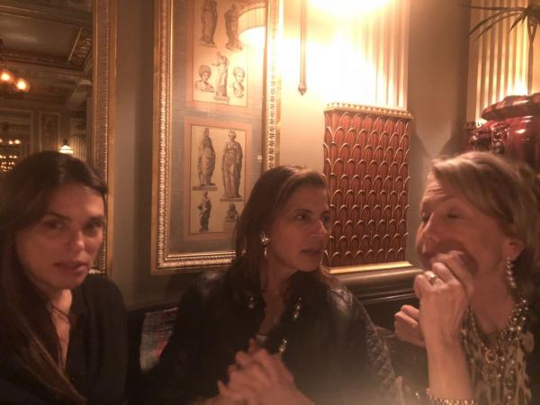 Μετά το τέλος της επίδειξης, στο γεύμα που ακολούθησε στο ξενοδοχείο The Costes, η οικοδέσποινα Σήλια Κριθαριώτη, με την Καλλιόπη Καρελα και της Elizabeth Schwartzman.