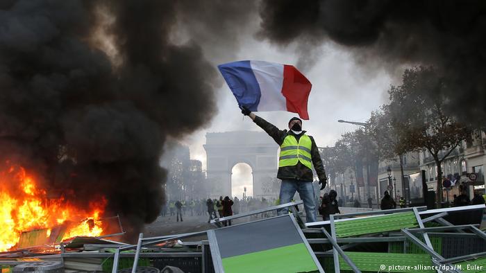 Στην παλέτα χρωμάτων και συμβόλων που χρησιμοποιούν οι Γάλλοι διαδηλωτές για να εκφράσουν το θυμό τους μπαίνει δυναμικά πλέον το κόκκινο, χάρη στη μίξη των Κίτρινων Γιλέκων και του Facebook.