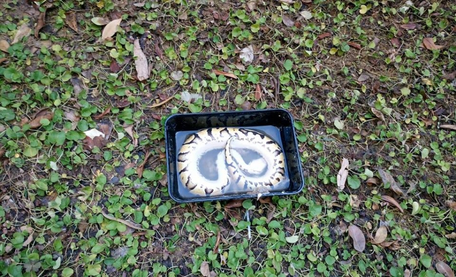 Η Επιτροπή Προστασίας Σέιχ Σου, δέχτηκε κλήση πριν από δύο μέρες, από κάτοικο της Πυλαίας Θεσσαλονίκης η οποία διαπίστωσε ότι στην πίσω αυλή του σπιτιού της υπήρχε ένα παρατημένο πλαστικό δοχείο με έναν μικρό πύθωνα του είδους Python regius (Ball python/Βασιλικός πύθωνας), είδος που συχνά πωλείται σε petshop ως εξωτικό κατοικίδιο.