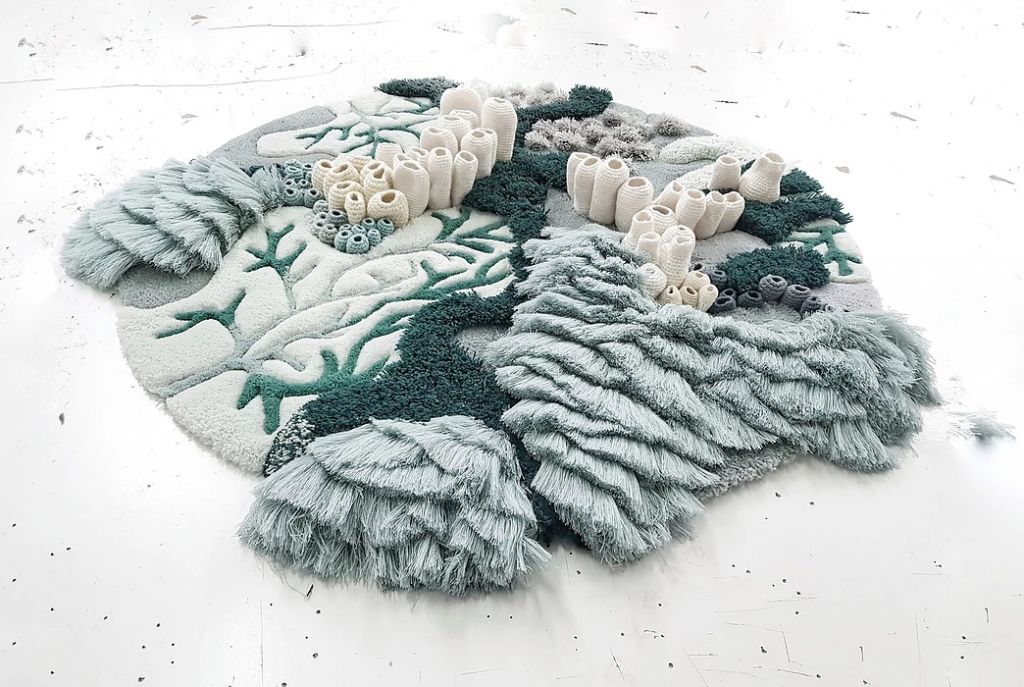 Η Μπαραγάου χρησιμοποίησε βιομηχανικά νήματα που προορίζονταν για χωματερή για να φιλοτεχνήσει την «Ταπισερί του Ωκεανού», αποτίοντας φόρο τιμής στον ωκεανό, το λίκνο της ζωής στη Γη.