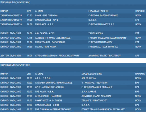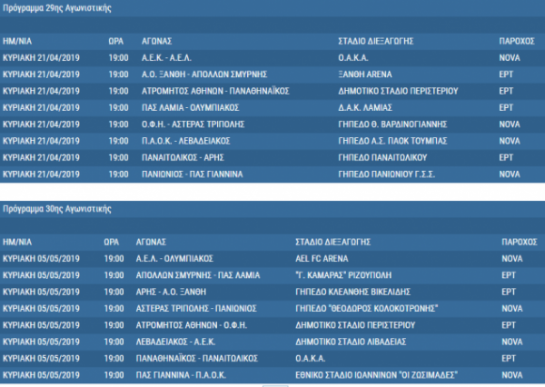 Αναλυτικά το πρόγραμμα των τελευταίων 10 αγωνιστικών του πρωταθλήματος που ολοκληρώνεται στις 5 Μαΐου: