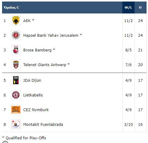 Εξάλλου, η Χάποελ σάρωσε την Μπάμπεργκ (103-89) και συνεχίζει να ελπίζει για την πρώτη θέση την οποία αυτή τη στιγμή κατέχει η ΑΕΚ.
