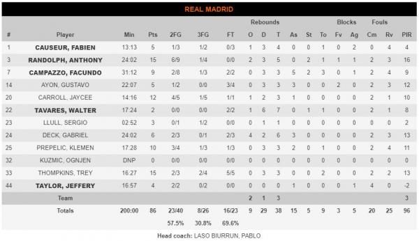 Ο Ντάγκλας και πάλι πήρε την τελευταία επίθεση για να ισοφαρίσει, με τη Ρεάλ να επιλέγει την άμυνα αντί του φάουλ και τελικά βγήκε κερδισμένη αφού ο Αμερικανός αστόχησε. Το τελικό 86-82 έκανε ο Καμπάτσο που δέχτηκε αντιαθλητικό φάουλ από τον Ντάγκλας και ευστόχησε στις δύο βολές του, σφραγίζοντας ένα πολύ σημαντικό διπλό για τους Μαδριλένους, στην υπεράσπιση της 2ης θέσης της βαθμολογίας από την 3η ΤΣΣΚΑ Μόσχας.